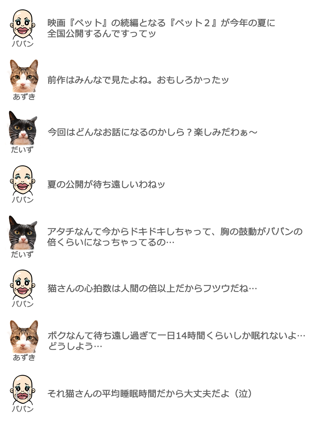えーっと… あずきさんもだいずさんも『ペット2』の公開が楽しみ♥ってことはわかりました。公開されたらまたみんなで観ようね♥